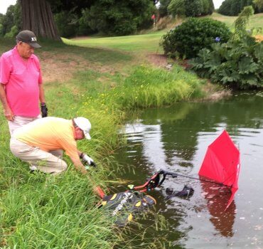 Other members of the group helped to fish the cart out of the water, using their golf clubs to hook it and avoid getting wet. But the gear was soaked through, and as the misfortunate Bolter tipped water out of his golf bag, a few tadpoles came with it. “So now we’ve nicknamed him Tadbolt,” said one of his golfing friends, who captured the incident on his phone. “That’s the second time it’s happened to our group of players, on the same hole,” he laughed.